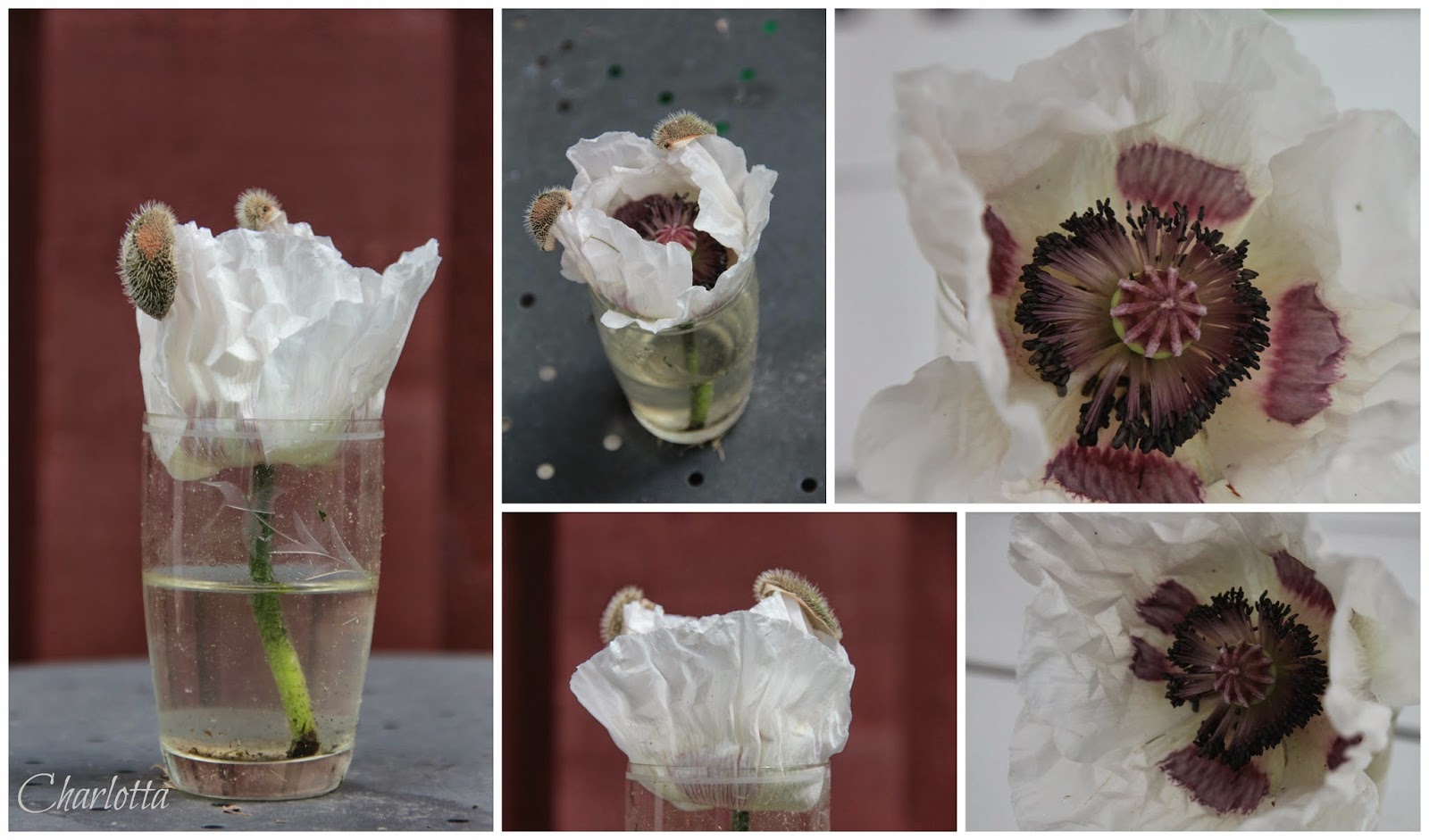 Förra året sådde jag frö av vit vallmo som skulle matcha min vackra vita trädpion.