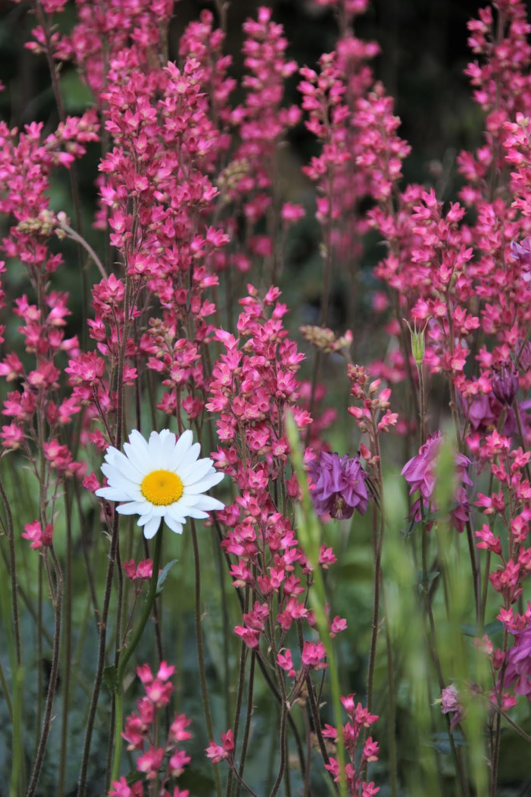 Prästkragar i kombination med rödblommande alunrot, en svårslagen kombination i mitt tycke.
